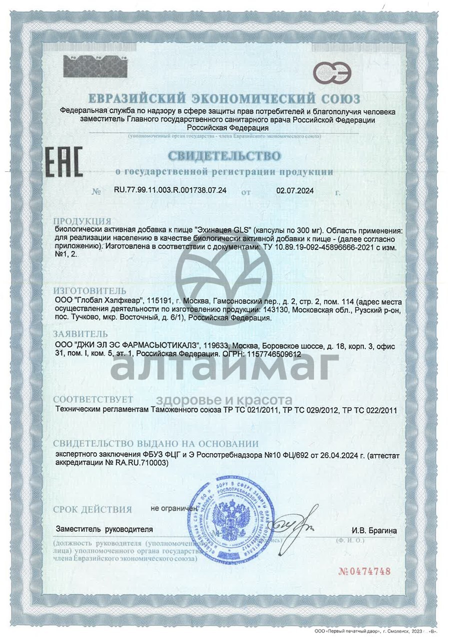 - Чтобы купить Эхинацея БАД GLS 60 капсул совершите всего несколько шагов: укажите количество продукта и нажмите на кнопку «Купить».