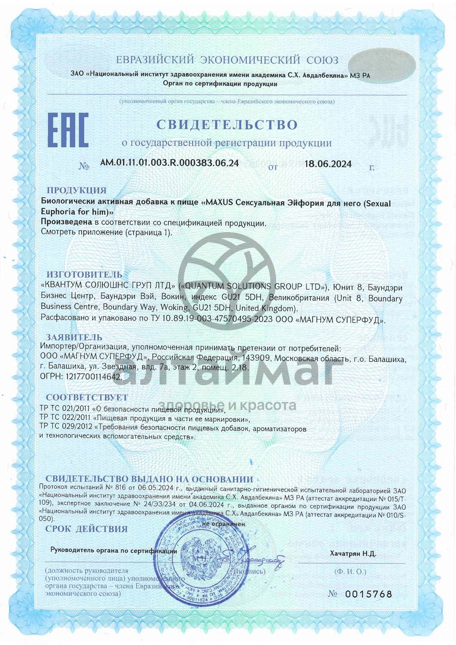 - Чтобы купить Maxus Sexual Euphoria для него 60 капсул совершите всего несколько шагов: укажите количество продукта и нажмите на кнопку «Купить».