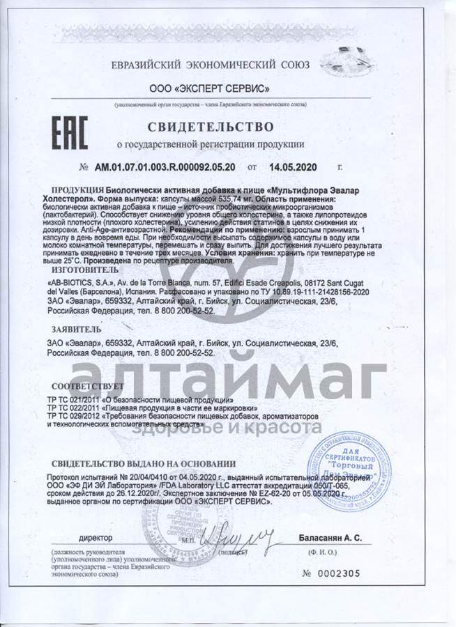 Мультифлора Эвалар Холестерол – специально разработанный пробиотик, для снижения уровня общего холестерина. Он способствует снижению уровня липопротеидов низкой плотности (плохого холестерина), усилению действия статинов в целях снижения их дозировки.