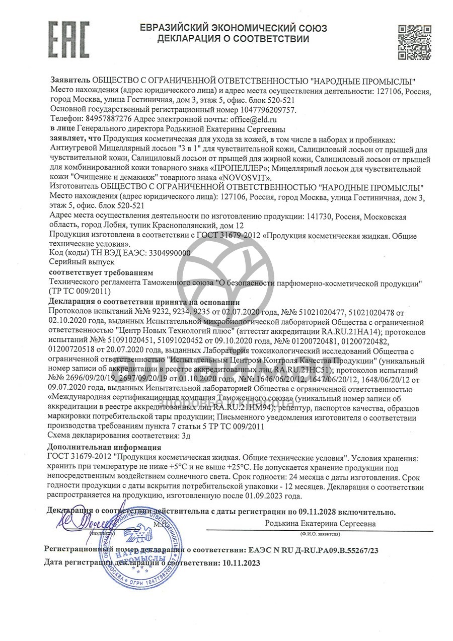 Есть вопросы по товару "Пропеллер Лосьон мицеллярный 3в1, 100 мл"?